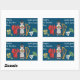 A sheet of four rectangular Stickers to seal your St David's Day mail, with a row of Welsh Emblems, a girl in welsh traditional dress, a red dragon, a bunch of leeks, a harp and a bunch of daffodils.