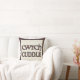 A pretty Throw Pillow with the words 'cuddle' and 'cwtch' (Welsh for 'cuddle' or 'hug'), filled with a ditzy pattern of bright flowers on a black background.