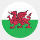 Large round stickers of the flag of Wales, featuring the red dragon.