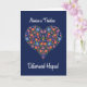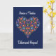 A Grandparents Day Card with 'Happy Grandparents Day' in Welsh and a Heart-shaped Floral Pattern on a Deep Blue background, inspired by Eastern European Folk Art. From a hand-painted paper collage by Judy Adamson, part of the Posh & Painterly 'Folk Heart' collection.