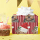 cute Welsh terrier wearing Christmas Santa cap on holiday striped background