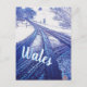 An edited photo of a road in Newtown, Powys Wales. Blue tracks in the soft snow.