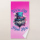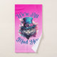 Add a little Wonderland magic to your bathroom with this We're All Mad Here Bath Towel. Featuring a whimsical cheshire cat in a top hat with the iconic quote from Alice in Wonderland on a bold pink background, this towel is perfect for dreamers, fantasy fans, and lovers of quirky home decor.