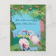 We're Dreaming of a Green Christmas Personalised Christmas Postcard features a tropical background with green tropical plants and foliage, a palm tree decorated with reddish Christmas ornaments, and two chummy flamingos. Text in handwriting across the sky says, "We're Dreaming of a Green Christmas..." You can change the background or text and add your own images and text to make it unique. It may suit your mood. And if not, you probably know someone whose state of mind it does suit. You can also add names and a date if you like.