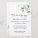 We're Eloping announcement to surprise friends and family with the news of your marriage and informing them of your reception details to come. Just married announcement features "we're eloping" in a fun script and a greenery branch of eucalyptus with gold elements.