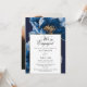 This elegant navy blue and gold floral 'we're engaged' engagement party invitation can be personalised with your information in modern typography and a special photo on the reverse. Designed by Thisisnotme©