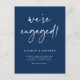 We're Engaged Hand Lettering Navy Blue Engagement Announcement Postcard