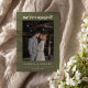 This engagement announcement features a clean olive green frame with bold typography and space for a favorite couple photo. A modern way to share the exciting news with friends and family while keeping the focus on the photo and names. The simple layout works beautifully for couples who love timeless design with a fresh feel. Personalize the names and wording to match your engagement story.