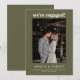 We're Engaged Minimalist Elegant Photo Olive Green Announcement
