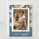 This modern and unique photo engagement party invitation card is perfect to let family and friends know you are engaged and invite them to the party. Send these to your guests with white calligraphy script 'We're Engaged', your photo on a colourful nature floral blue background. On the reverse is all your party information. Easy DIY (Do It Yourself) by editing the text in the text boxes on the right side of the screen. Also available in postcard format.