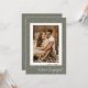 This modern and unique photo engagement party invitation card is perfect to let family and friends know you are engaged and invite them to the party. Send these to your guests with white calligraphy script 'We're Engaged', your photo green background accented with rose gold floral foliage overlay on a green background. On the reverse is all your party information. Easy DIY (Do It Yourself) by editing the text in the text boxes on the right side of the screen. Also available in postcard format.