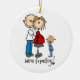 A stick figure expectant couple and toddler boy with text that reads 'We're Expecting!".