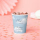 Celebrate the mum to be with these stylish cloud 9-themed baby shower paper cups that combine elegance and charm. The design creates a minimalist and charming ambiance for the event, for a day filled with love, joy, and cherished moments. Use the design tools to customise the text and the fonts.
