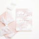 Elegant dusty pink calligraphy and dreamy watercolor clouds "We Are On Cloud Nine" baby shower invitation.