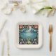 WE'RE OVER THE MOON FOR YOU! | Beautiful Girly Girl Baby Shower paper plates and party decor with your message to your arriving guests is easily personalised (or can be customised for any saying or occasion). Colourful moonlit nighttime garden in rich colours of pink, lavender, butter yellow, green, teal blue and white with a deep emerald green and rich black background. Art graphically designed by internationally licensed artist and designer, Audrey Jeanne Roberts ©