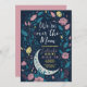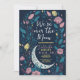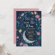 This pretty and cute baby shower invitation is perfect for the summer and spring. It features hand-drawn illustrations of flowers, leaves, stars, and a moon. The colour scheme includes navy blue, girly pink, yellow, white, and teal green. The design consists of the phrase, "We're over the moon." It's sweet, unique, trendy, and cool; the perfect design to impress your guests.