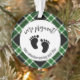 Announce your pregnancy to your love ones with this We're Pregnant Christmas Green Plaid Pregnancy Announcement Ornament with cute baby feet . Personalise by adding your details. For further customisation, please click the "Personalise" button and then click on "Edit using Design Tool" to change text colour, style and size. Enjoy this Holiday Season and Congratulations!
