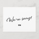 Express your regret for being in the position to announce you have to cancel or postpone your wedding, event, party or celebration, and the hope to reschedule it as soon as possible with this simple, elegant and modern "we're sorry" typography postcard with two little hearts. +++++++++++++ Easy to personalise with your text on both sides. +++++++++++++ If you want the title or the layout of the design modified, please message me!