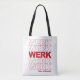 Our funny and trendy take on the classic "thank you, have a nice day" grocery bag features "WERK" five times in bright red block typography with "have a nice day" tucked at the bottom. Makes a fun and functional alternative to plastic grocery bags, with cute retro style and years of use!