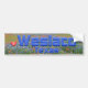 Weslaco TX bumper sticker with blue 3D letters and bluebonnets.