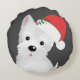 West Highland Dog Santa Hat Holly Berries Round Cushion
