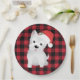 West Highland Dog With Santa Hat Buffalo Plaid Paper Plate