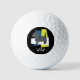 West Highland White Terrier / Westie dog silhouette grid abstract pattern yellow and blue with tricolour background in a black circle. Personalize with your three initials in white under the dog shape. Perfect for the dog lover in your life or the dad who loves golfing, these golf balls are the perfect way to show off your passion.