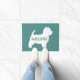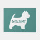 West Highland White Terrier Silhouette Rustic Style Welcome Mat. Personalise with your family name, Welcome, or delete the default text if you prefer no text at all. This teal and white Westie design makes a wonderful gift for new home owners, newlyweds, dog dads, dog moms, and anyone who loves their pets like family. This cute dog lover's doormat is available in a variety of colour choices. Visit Jenn's Doodle World for even more dog breed doormats and Westie lover’s home decor.