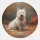 West Highland White Terrier in Autumn Leaves Fall Classic Round Sticker