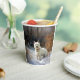In order to close the cup with the lid, one have to squeeze the cup and then close the lid. 2nd image shows the shape of the cup after the cup is closed with the lid. Printing is Bad.