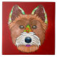 Unique West Highland White Terrier dog face with bold, colourful abstract patterns on a red background. Popular with dog lovers and pet lovers and rescue dog lovers.