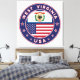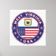 Badge of West Virginia with flag of West Virginia and flag of USA colours, rounded shape.