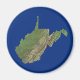 An elegant, detailed relief map of West Virginia placed over a flag-colour background.