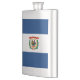 The product is a good size and came exactly as it was pictured. The lid is not attached to the flask, which could be dangerous on drunken nights... The print came out surprisingly well and looks very sharp. Would definitely recommend.