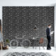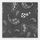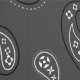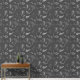 This peel and stick wallpaper has the look of a classic western bandanna with paisley shapes in black and white set against a charcoal grey coloured background.