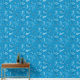This peel and stick wallpaper has the look of a classic western bandanna with paisley shapes in black and white set against a medium blue coloured background.