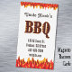 A custom restaurant magnetic business card template with script and western text, BBQ in smouldering letters and art of red flames on the top and bottom. Customise it to change your fonts, colours, add your own logo and more, even save your design for later.