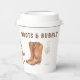 This design features modern neutral colours in a watercolor application. Design in cow print, glass of champagne, desert cactus, cowboy boots.
