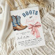 Elegant What will Baby Be Boots or Bows Themed Gender Reveal Invitation featured watercolor pink bow and blue cowboy boots. Matching products you can find in the collection.