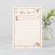 Western Bridal Shower Guess Who Game Card