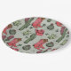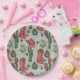 These festive and girly western Howdy Christmas Cowgirl paper plates feature hand-drawn illustrations of Xmas cowgirl boots, hats, mittens, cacti, holly berries and stars. All against an elegant sage green background.