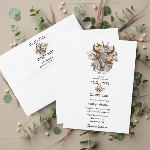 Western Country Cowboy Boho Cow Skull Wedding Envelope