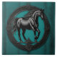 Western Country Equestrian Teal Black Horse Tile