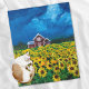 western country red barn summer sunflower field fleece blanket