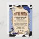 Cowboy Party Invitations, this fun cowboy invitation is great for inviting all of your favourite cow-friends to your western hoedown with these fun invitations. This design features a blue bandanna with ropin’ cowboy hat, boots, sheriff badge and silver horseshoes.