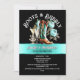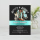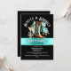 A tooled leather pair of brown and teal blue cowboy boots with a teal pattern inlay has blue peony flowers next to it and a chic watercolor glass of bubbly and a martini cocktail set against a black background. Editable white text templates may be personalised to suit your special celebration. This stylish dowloadable invite is ideal for a western themed, country "boots and bling" or "boots and bubbly" special event too.
