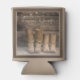 This fun, rustic can cooler makes a perfect casual wedding favour for guests. It features two pair of cowboy boots and a log cabin wall with string lights. For the western or horse lover. Personalise it with a single name, or add a couple's names. Delete the wedding date if not needed. Created by Simply Farmhouse Press; photo by Melanie Mauer on Unsplash.