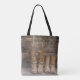 This fun, rustic all over design tote bag features two pair of cowboy boots and a log cabin wall with string lights. For the western or horse lover. Personalise it with a single name, or add a couple's names. Created by Simply Farmhouse Press; photo by Melanie Mauer on Unsplash.