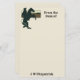Adapted from a vintage book cover this is a cool western theme design that features a bucking bronco cowboy silhouette. The rider on the horse sits in front of a panel that shows cows on the range that to suggest that he is on a cattle drive trail. The text is in an old west style font and says: from the desk of. There is a sample name template at the bottom that you change to your own name. The paper colour front and back is a creamy aged parchment tan. This is perfect stationery or letter head for a guy who loves horses or a gal who loves cowboys.