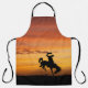 Silhouette of a cowboy riding a bucking horse with sunset background.